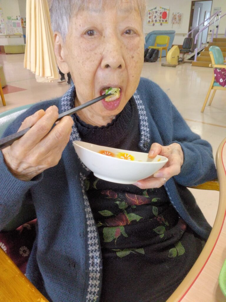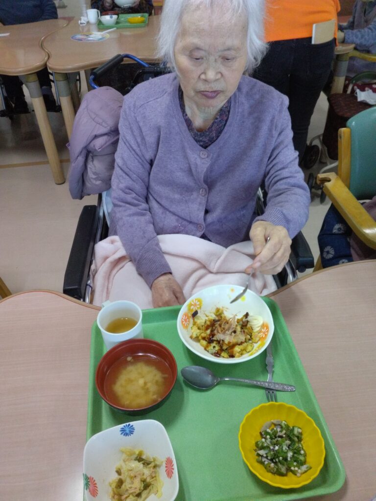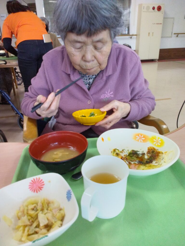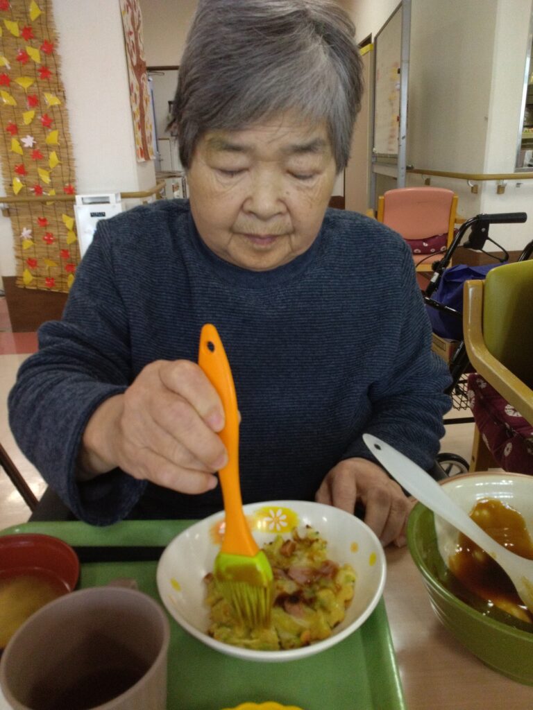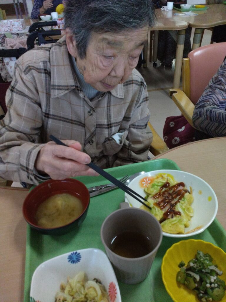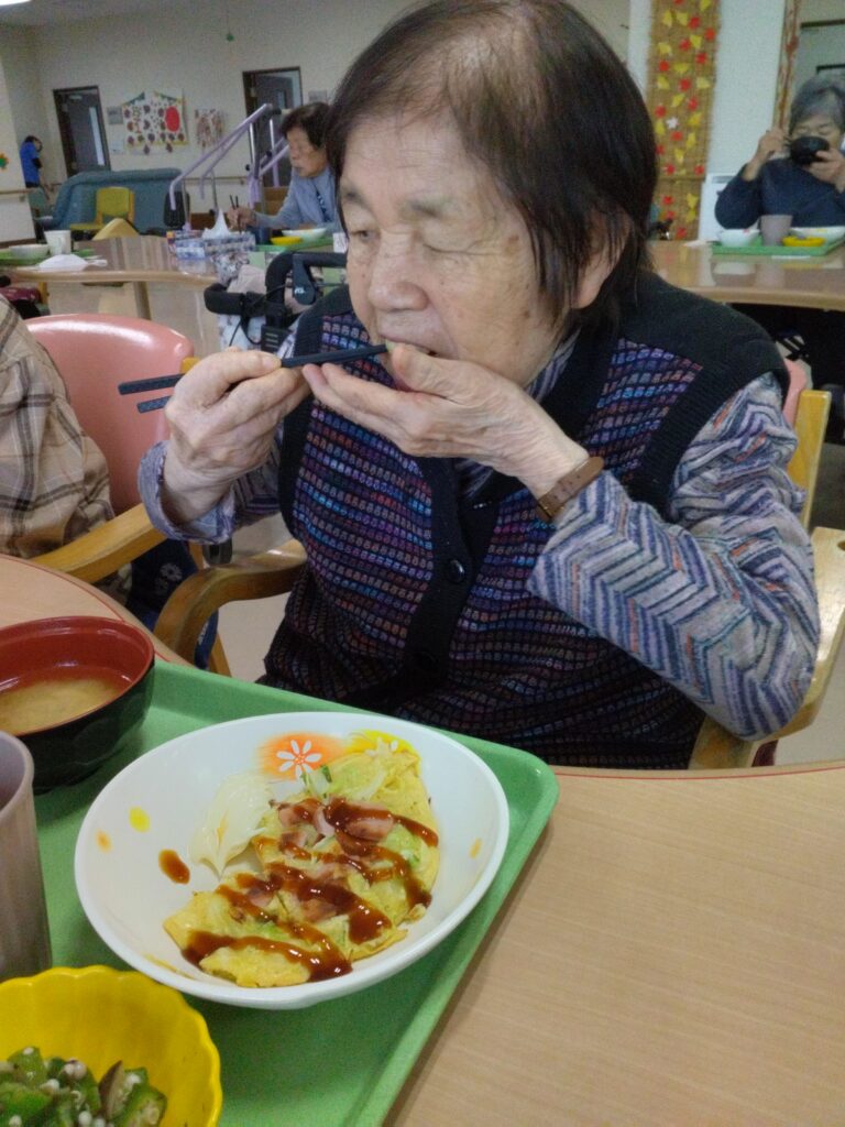 昼食の際はソース、マヨネーズ、青のり、カツオを自由にトッピングし、おいしく仕上げることができました。「おいしい!」と言っていただき、皆様完食されていました。おいしそうに召し上がられる皆様を見て職員一同嬉しかったです♪