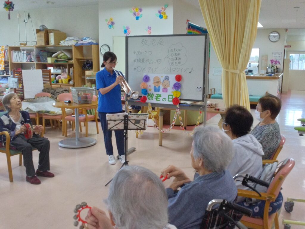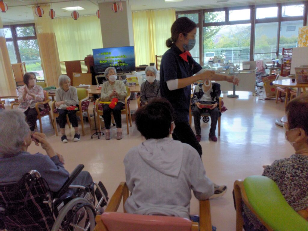 どの演目もとても笑顔いっぱいでした!!最後に、手作りの敬老のお祝いをお一人おひとりに手渡しさせていただきました!(^^)!