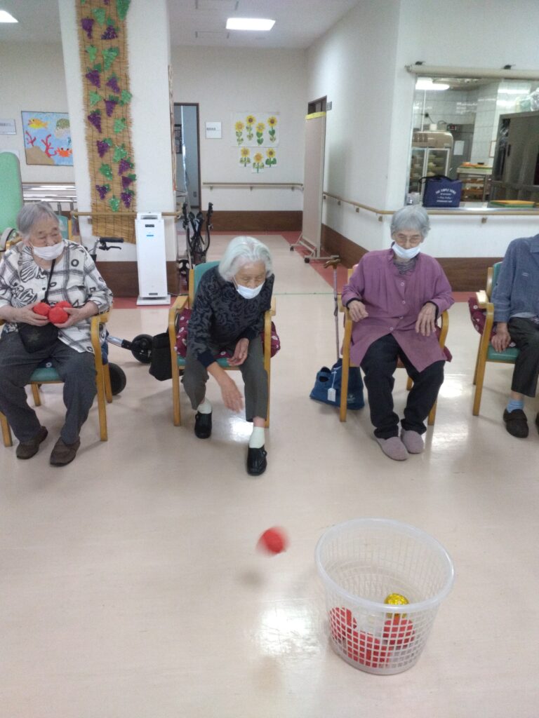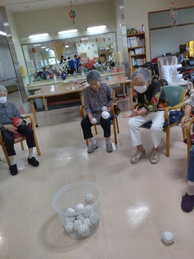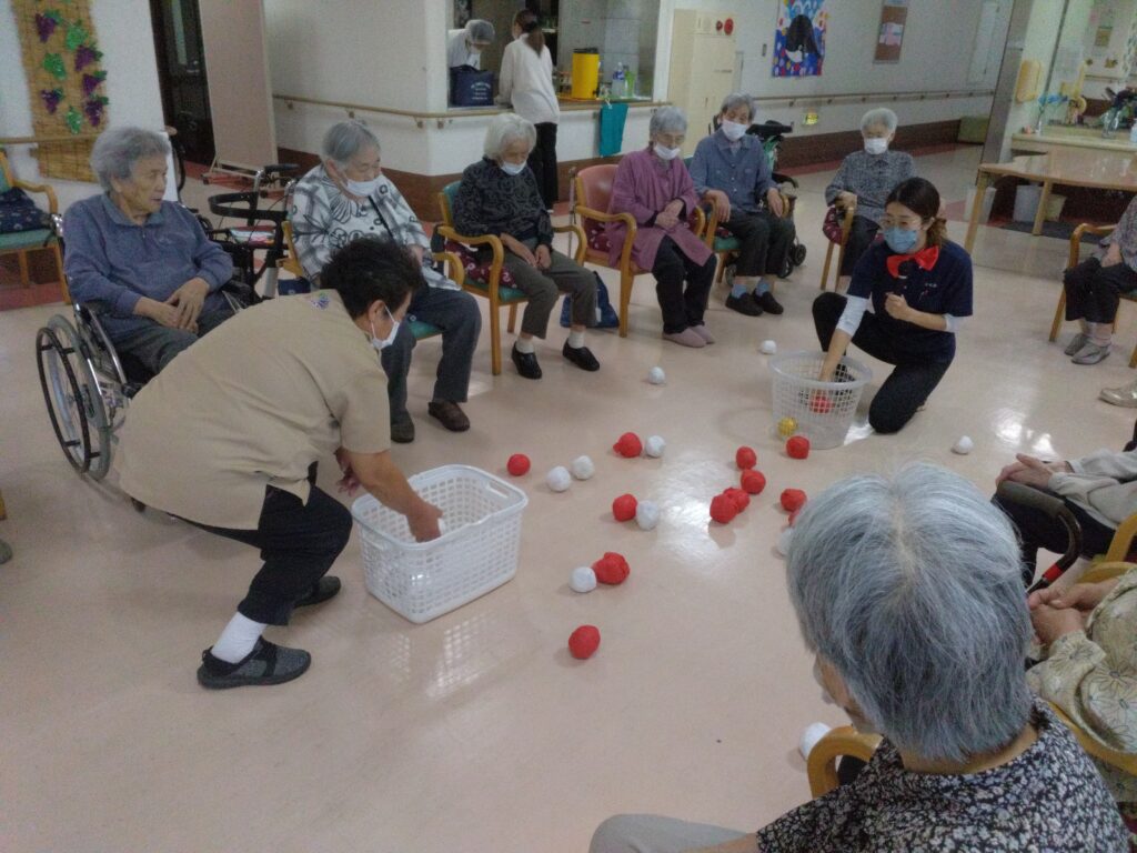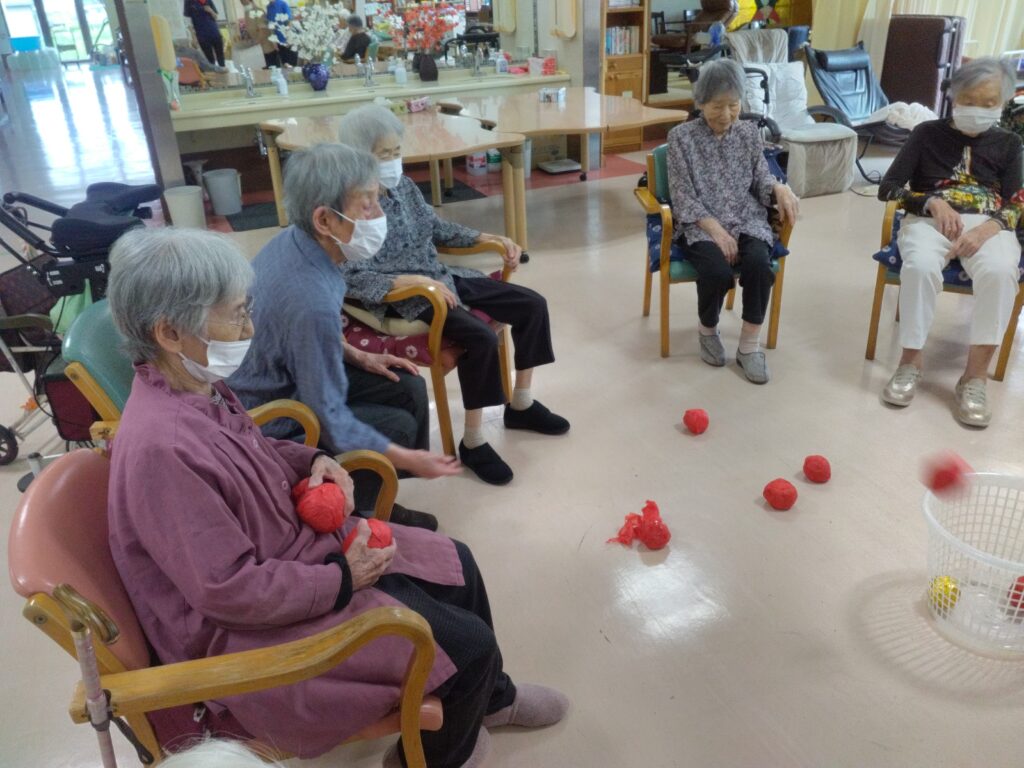 他の演目として曲あてクイズや〇×クイズなどのミニゲーム、縁起の良い紅白の玉入れも参加していただきました☺