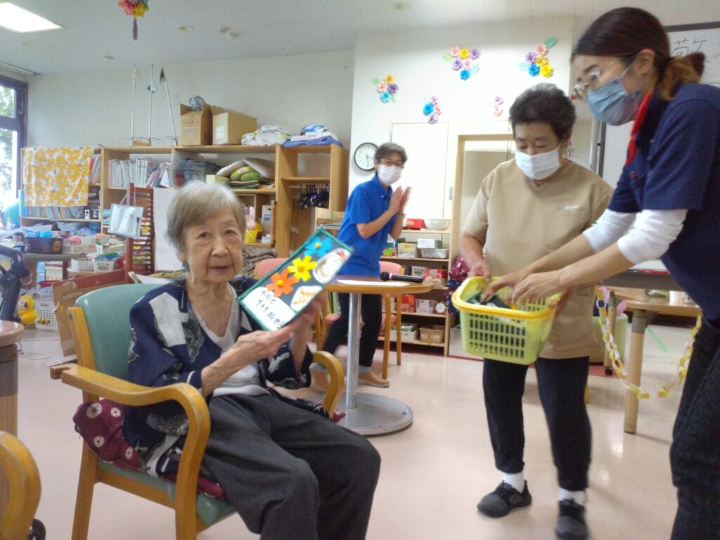 時期がずれましたが、日ごろのご利用者の方々へ感謝の気持ちを込めて、デイサービスでも敬老会の行事を行いました!