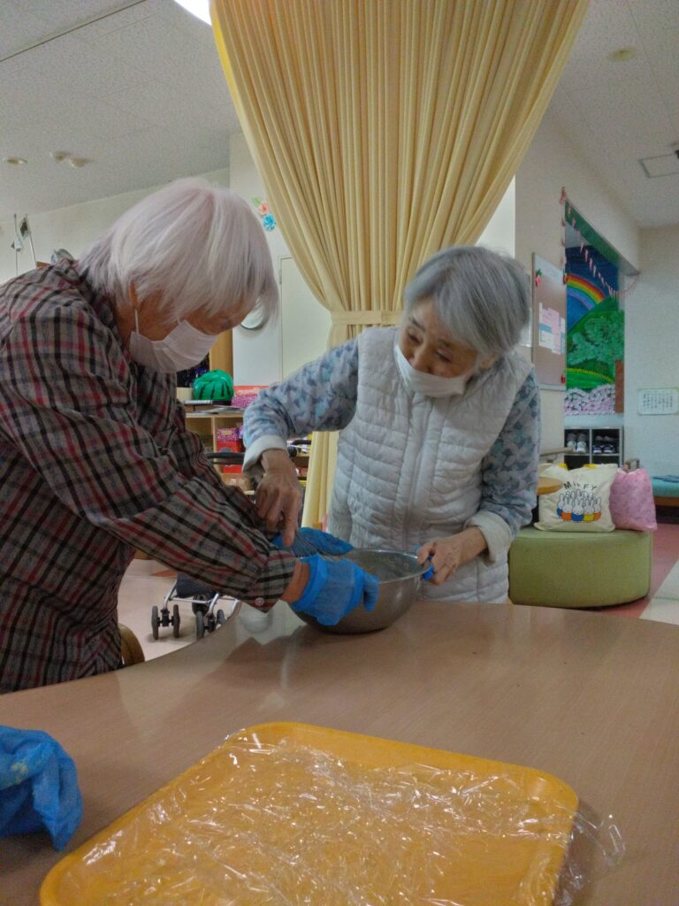 11月17日月曜日に柿のお菓子作りとカラオケ大会を開催いたしました!今回は、柿をアレンジしたレシピに挑戦してみました!(^^)!