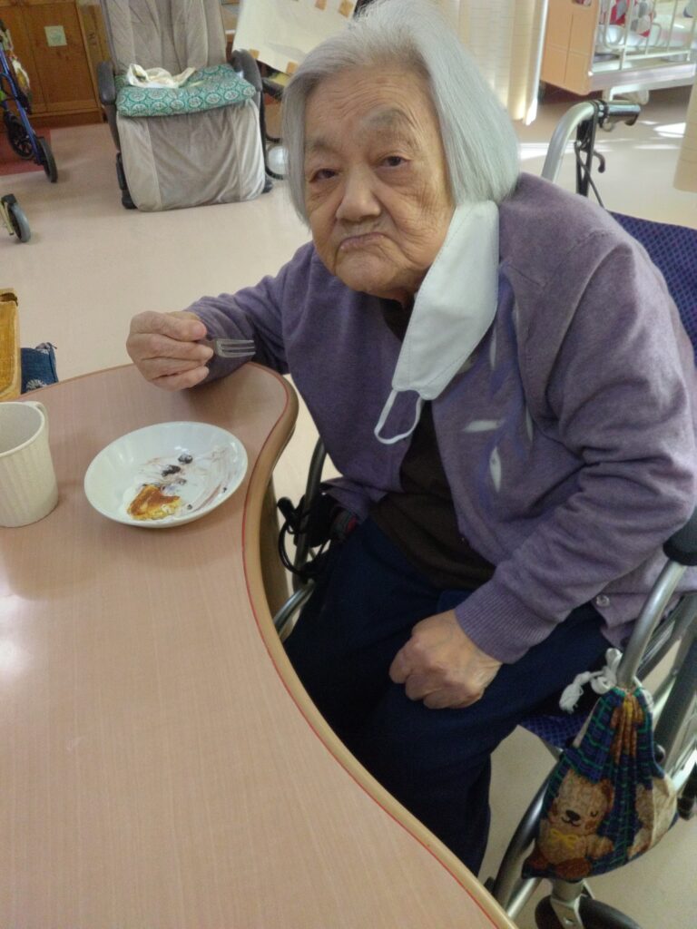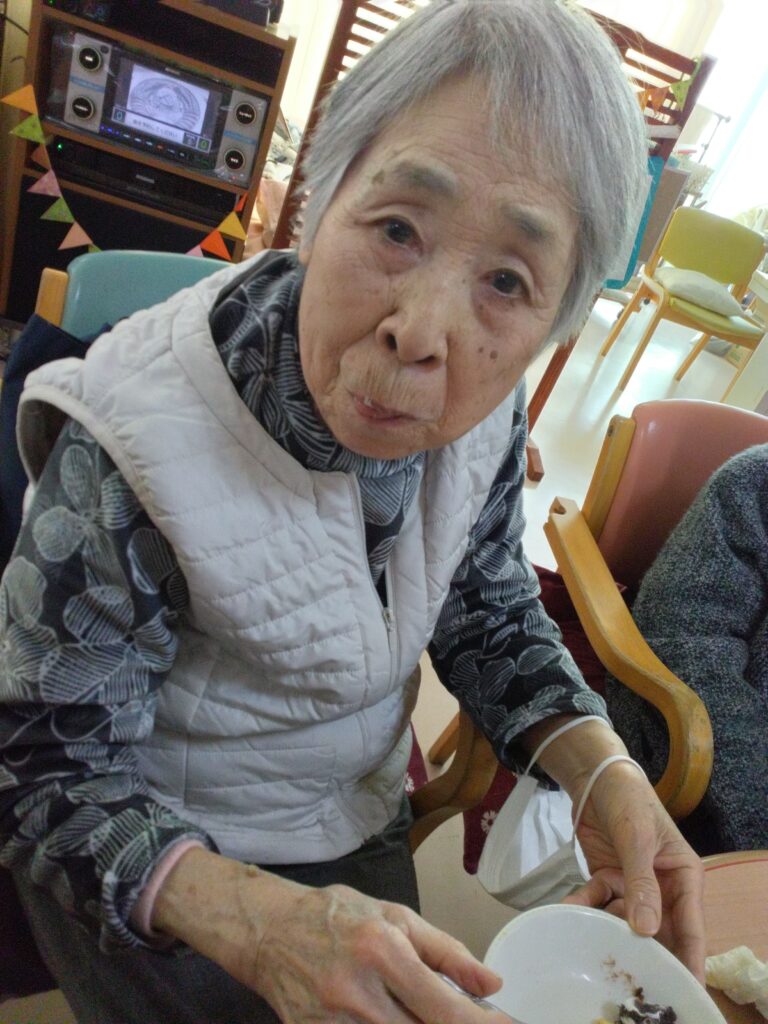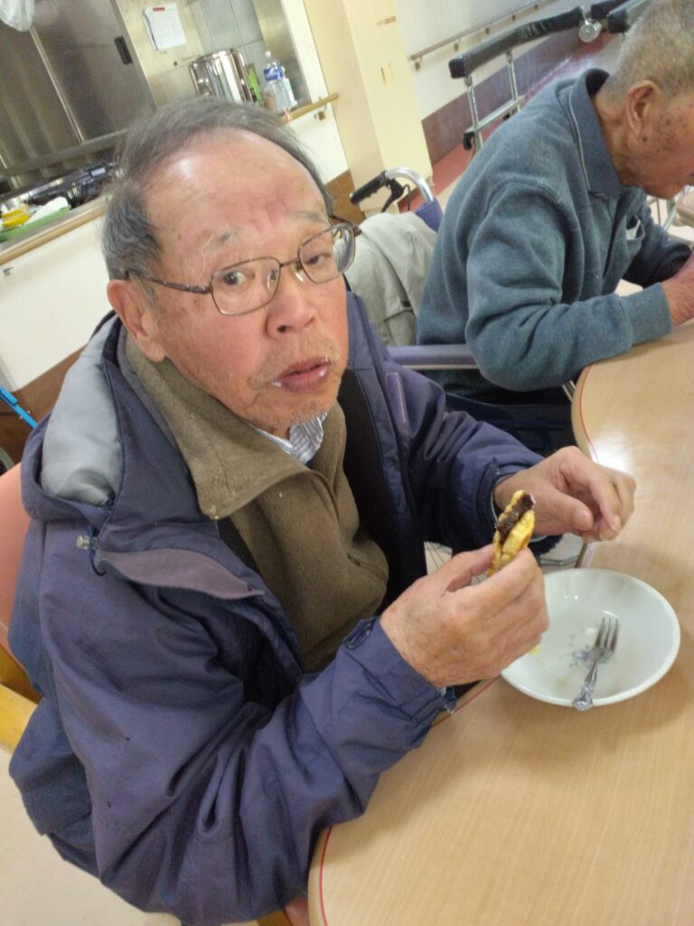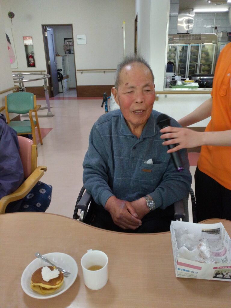 「いただきます」の挨拶は、今週より新規でお見えになっているⅯ様にお願いしました。できないわ、やったことないと仰っておられましたがマイクを向けさせていただくと大きな声で「いただきます!」と笑顔で皆様に向けて伝えておられました( ^)o(^ )