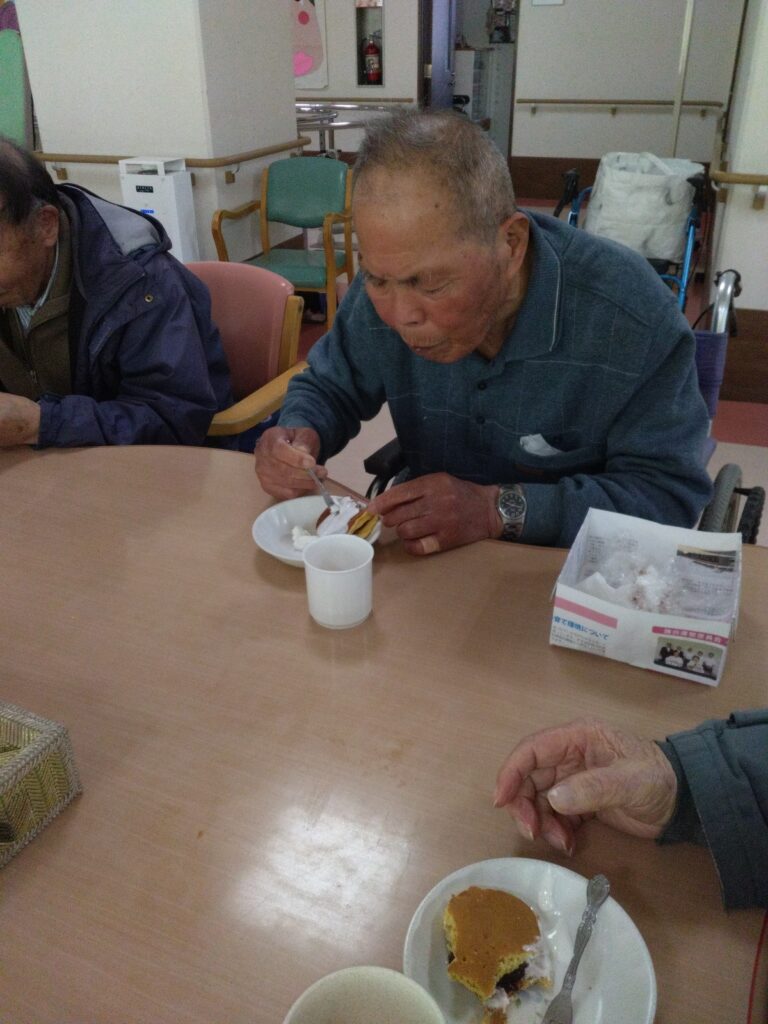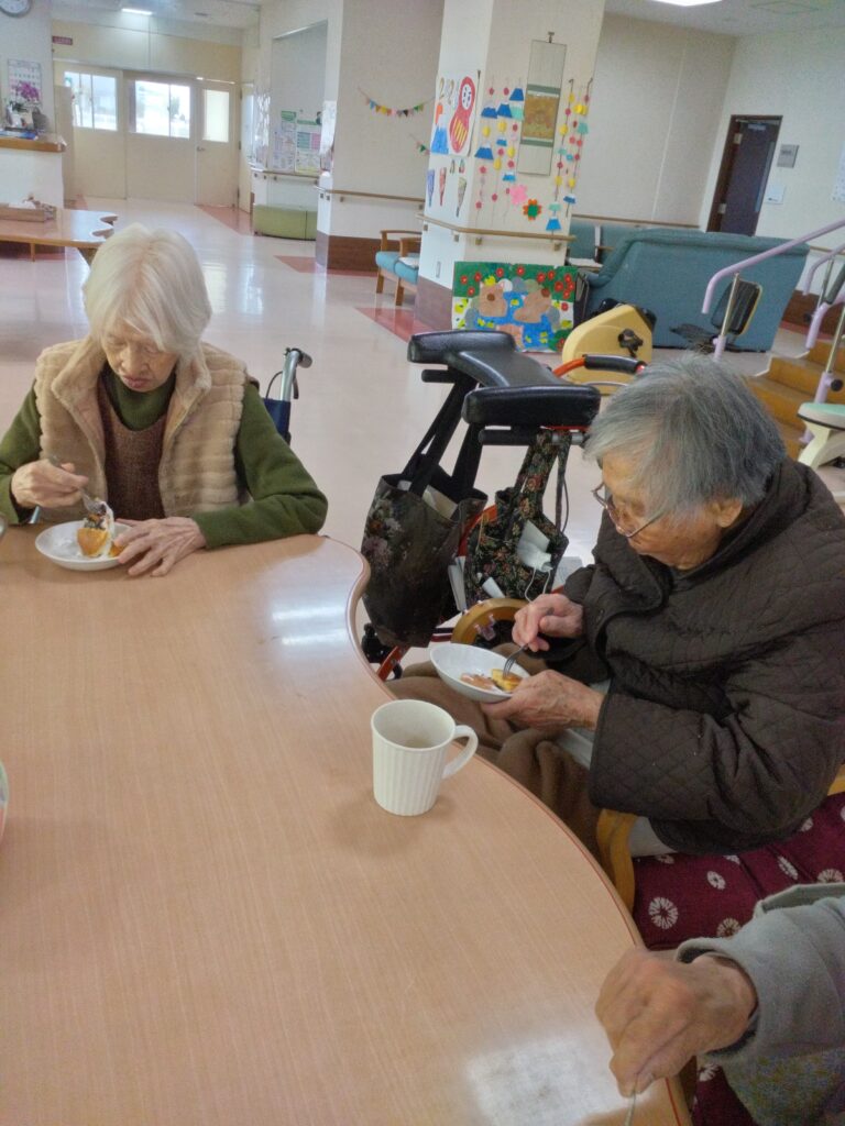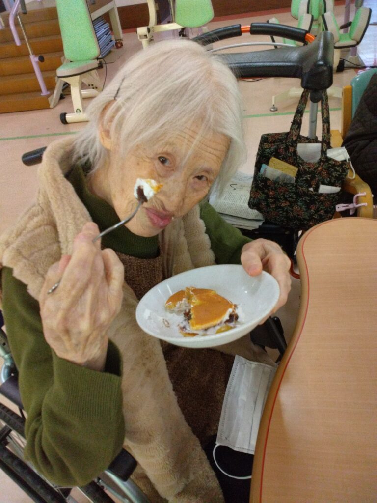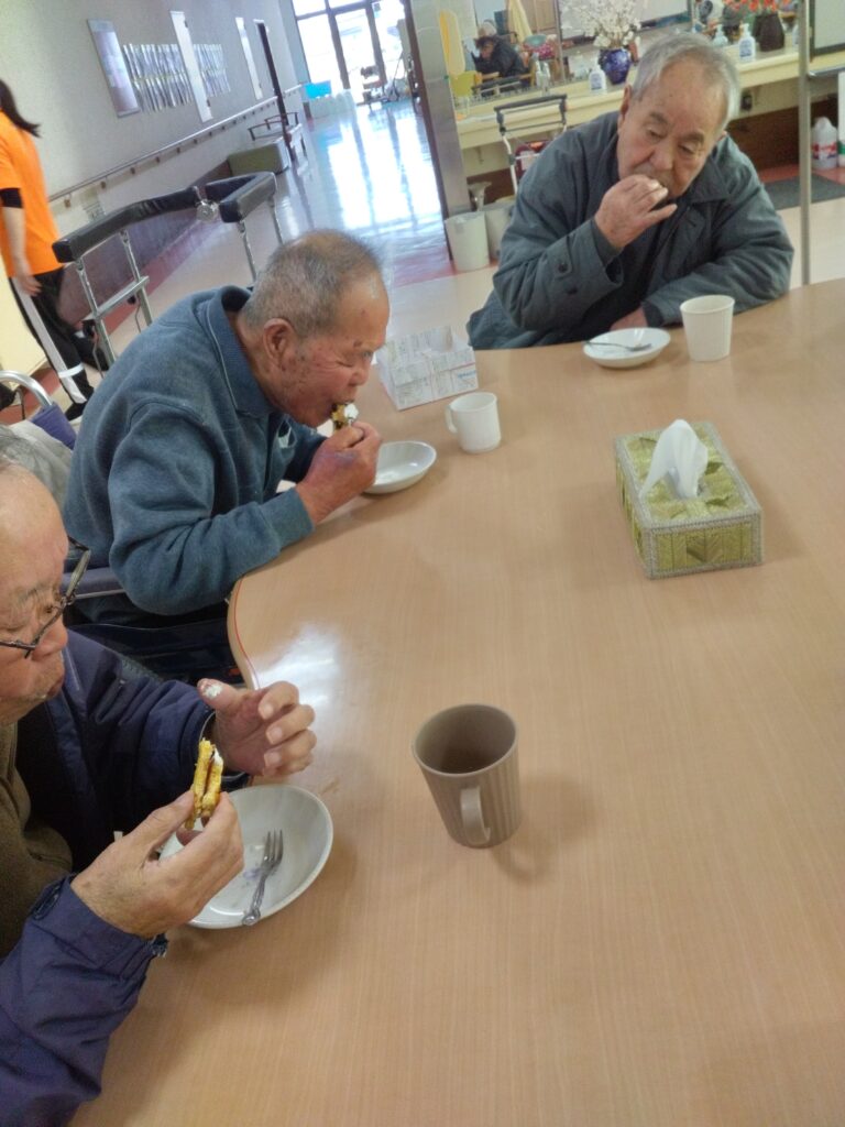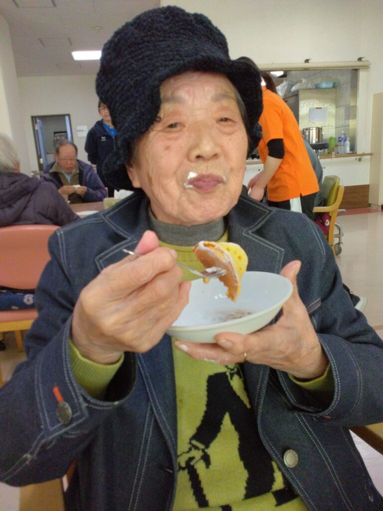 「いただきます」の挨拶は、今週より新規でお見えになっているⅯ様にお願いしました。できないわ、やったことないと仰っておられましたがマイクを向けさせていただくと大きな声で「いただきます!」と笑顔で皆様に向けて伝えておられました( ^)o(^ )