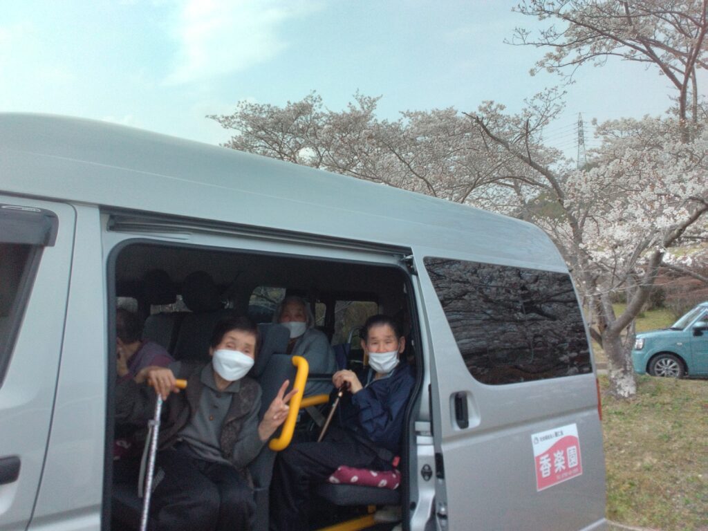 皆さん、こんにちは(*^_^*)香楽園デイサービスセンターです。本日は春の訪れを感じるお花見ドライブを行いました!
