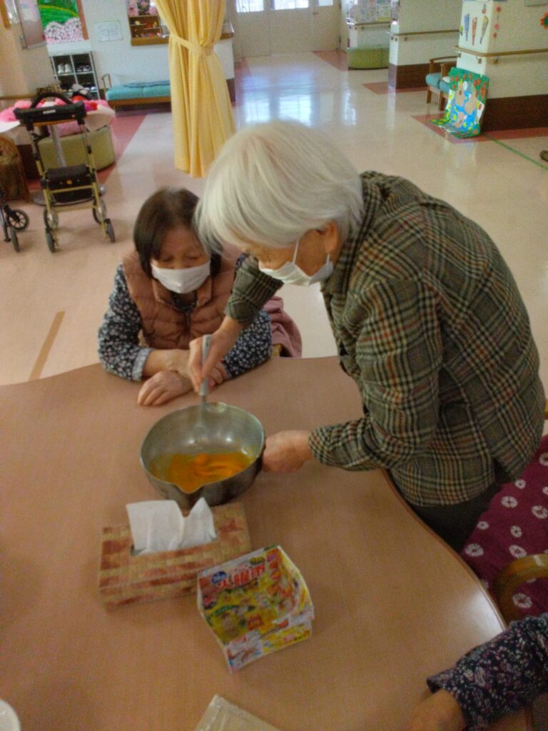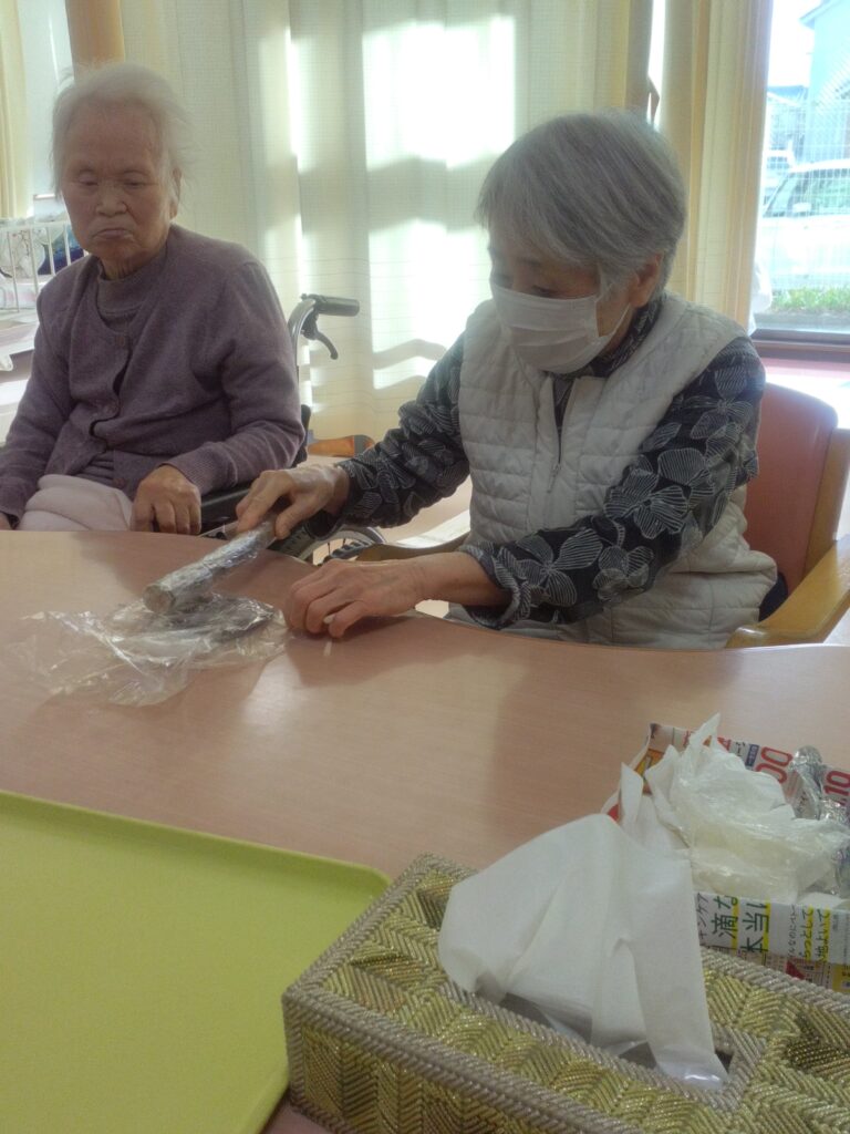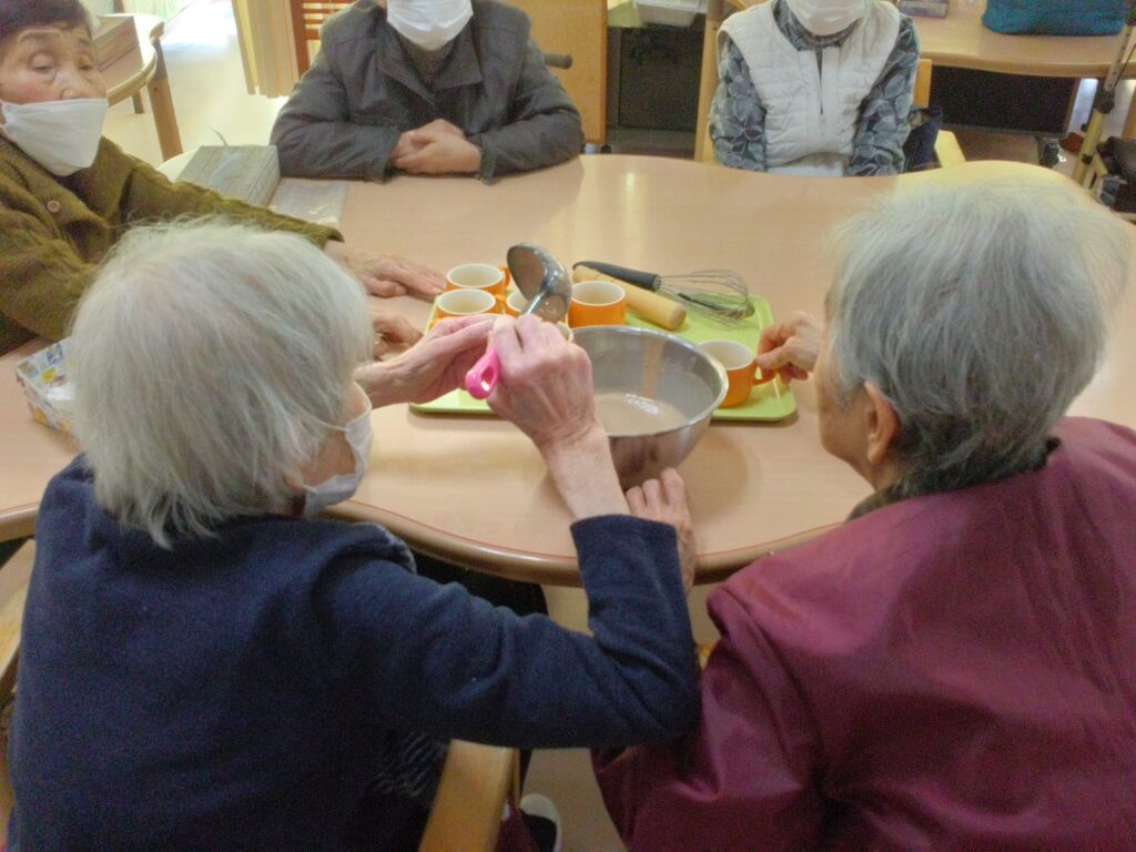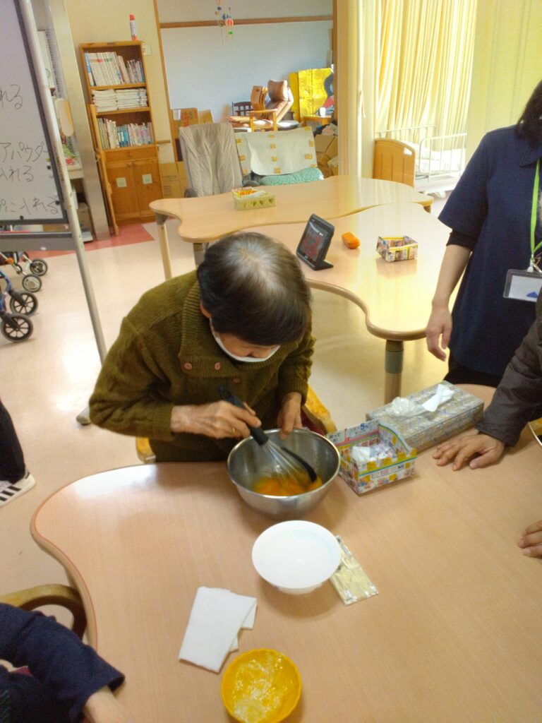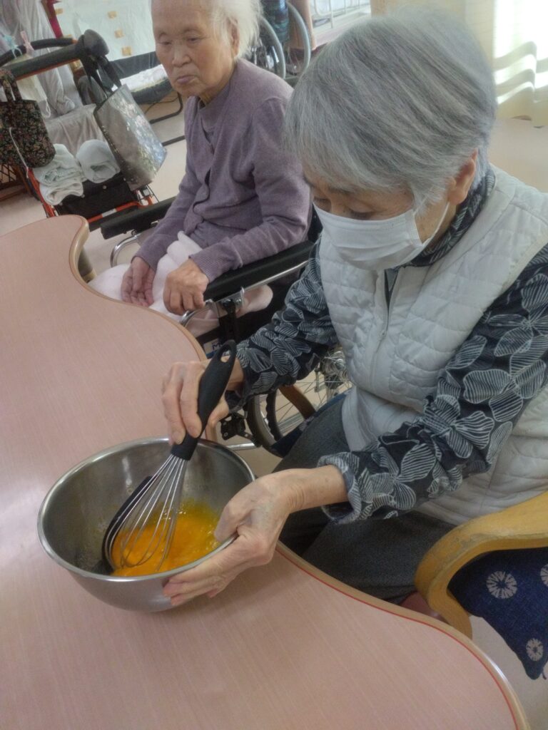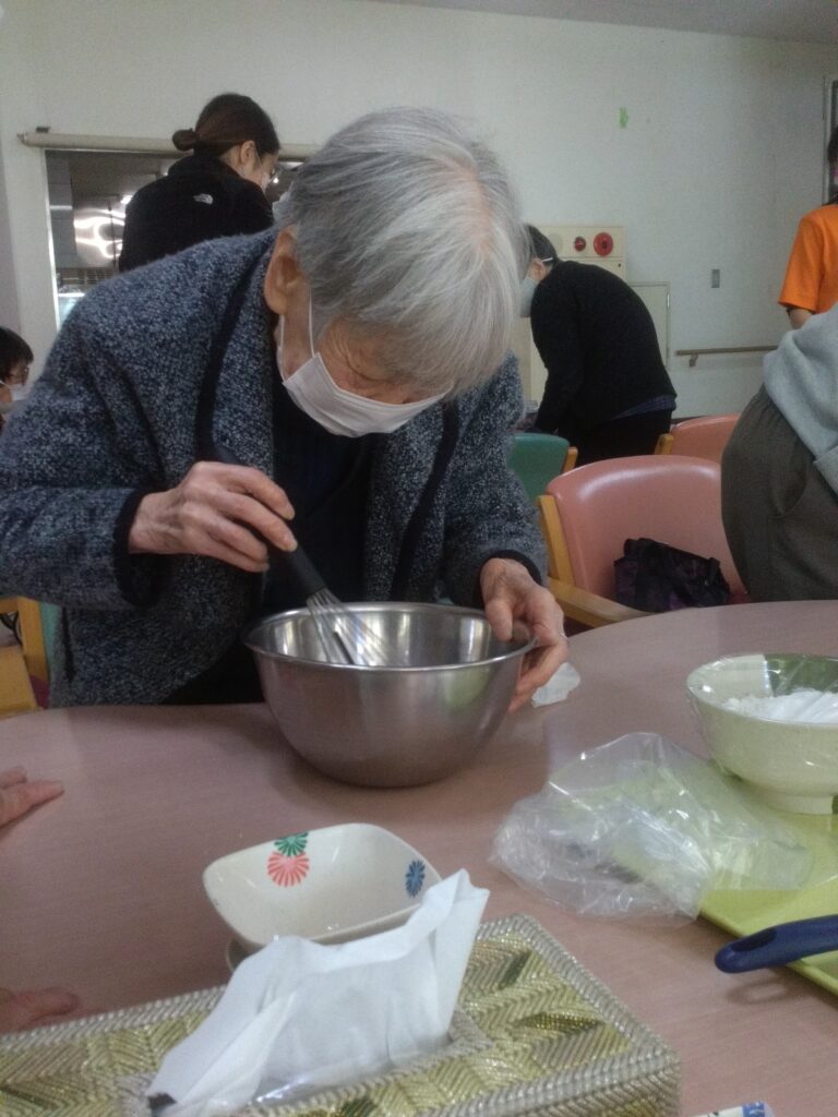 調理レクリエーションでは手先の運動だけではなく、五感を刺激し、会話や笑顔が自然と生まれる時間ですね(^^♪