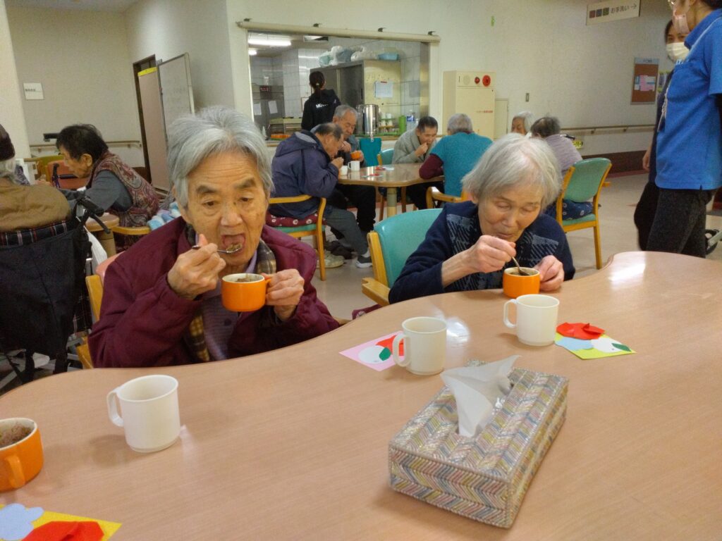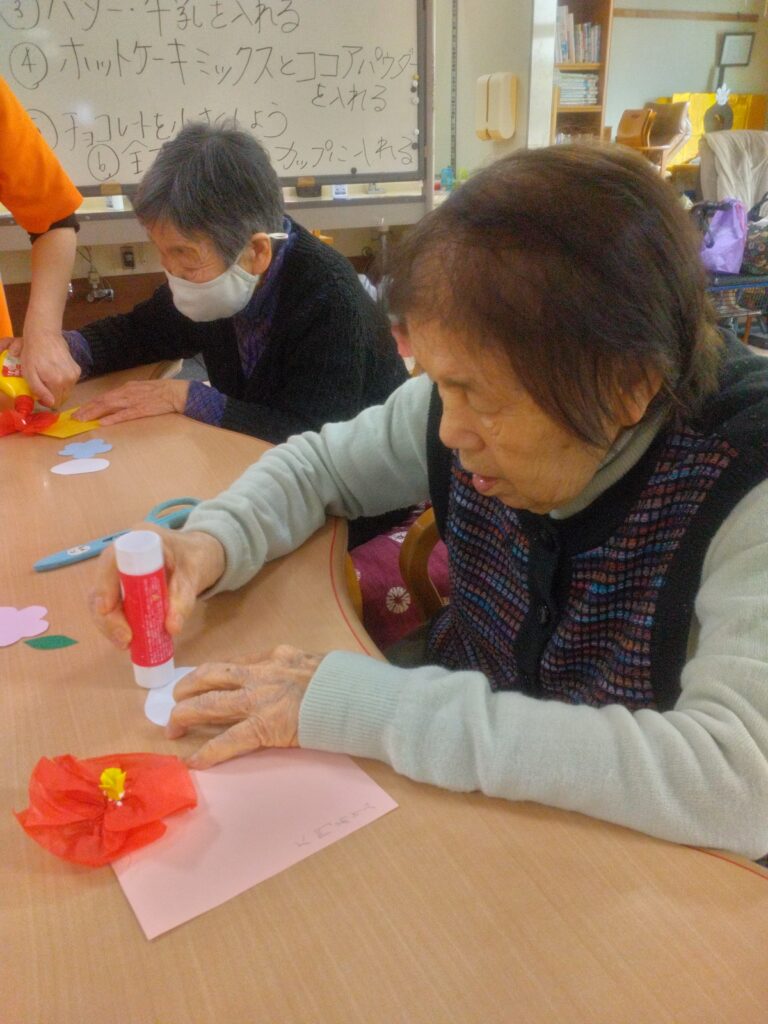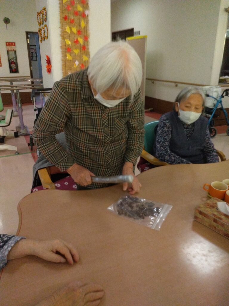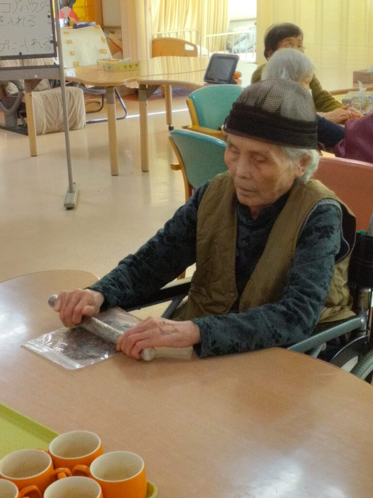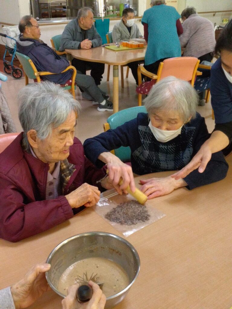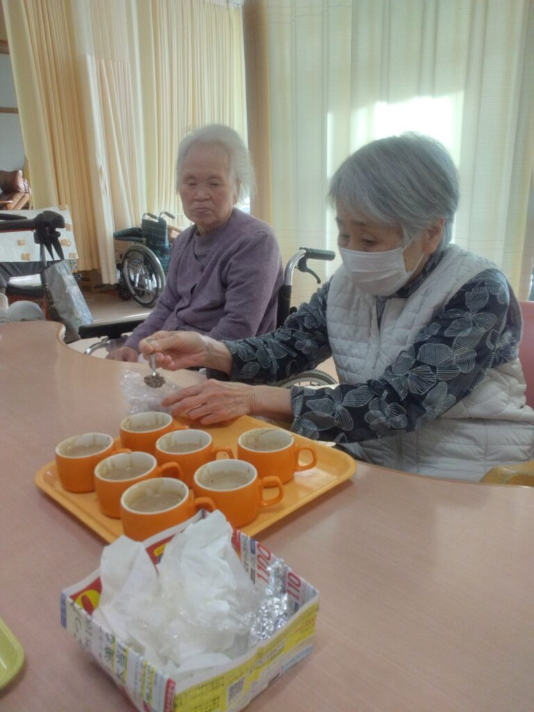 調理レクリエーションでは手先の運動だけではなく、五感を刺激し、会話や笑顔が自然と生まれる時間ですね(^^♪