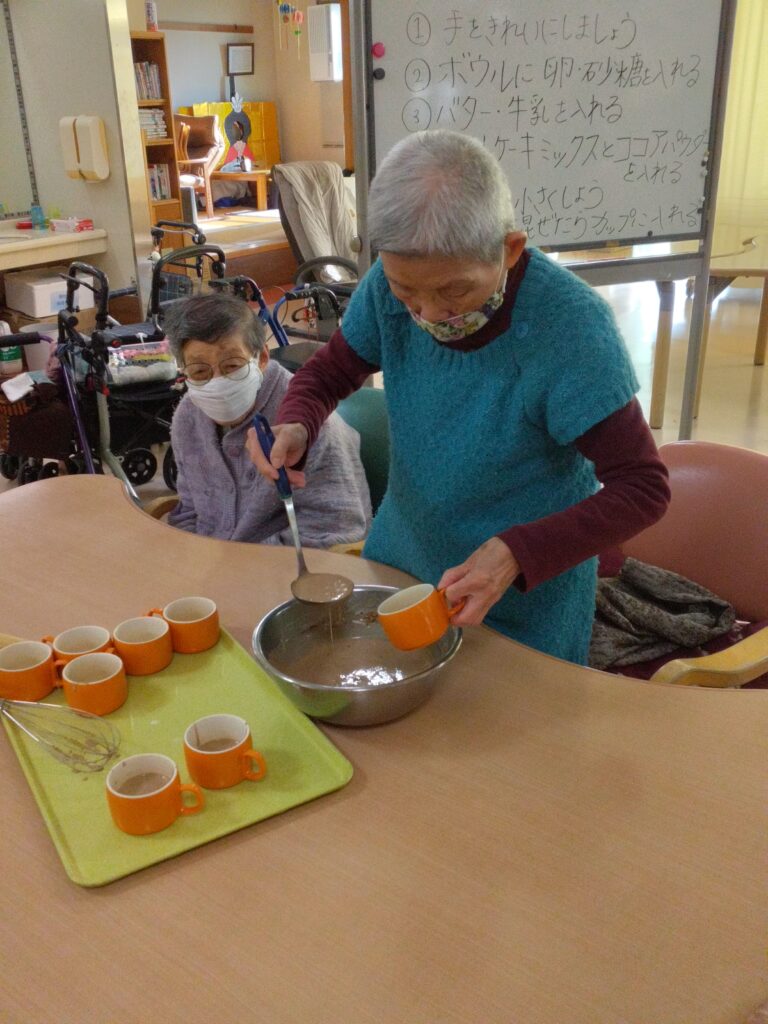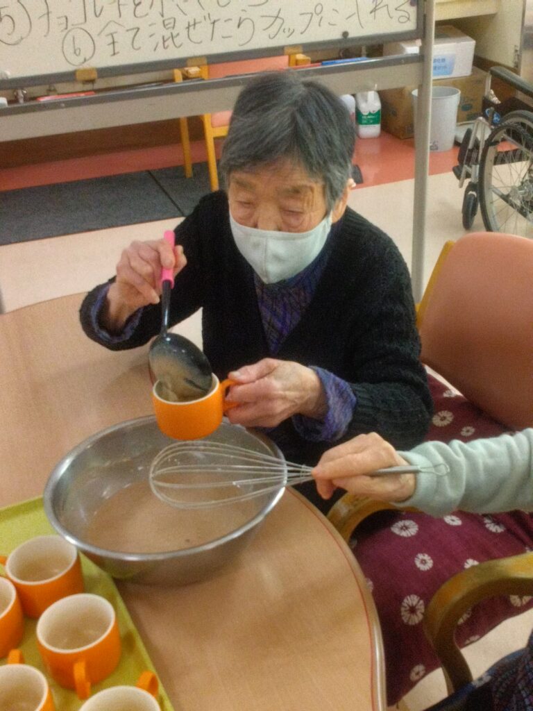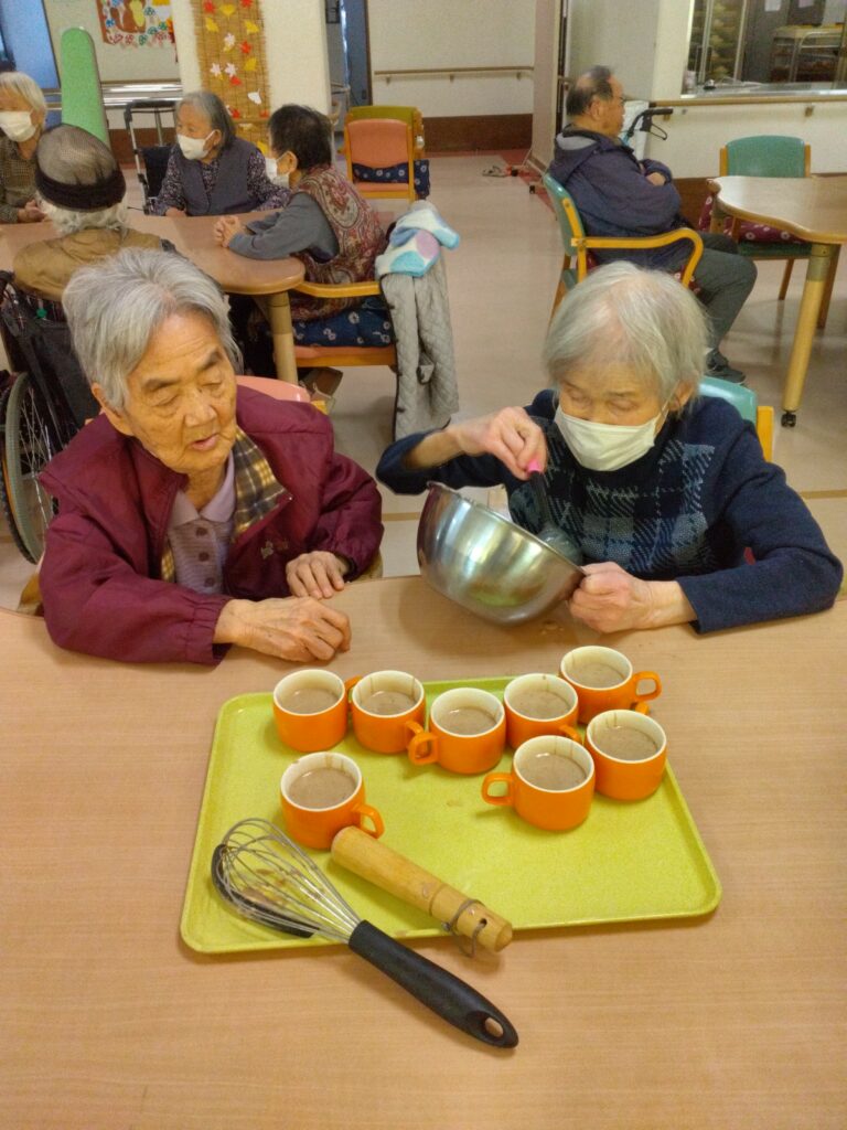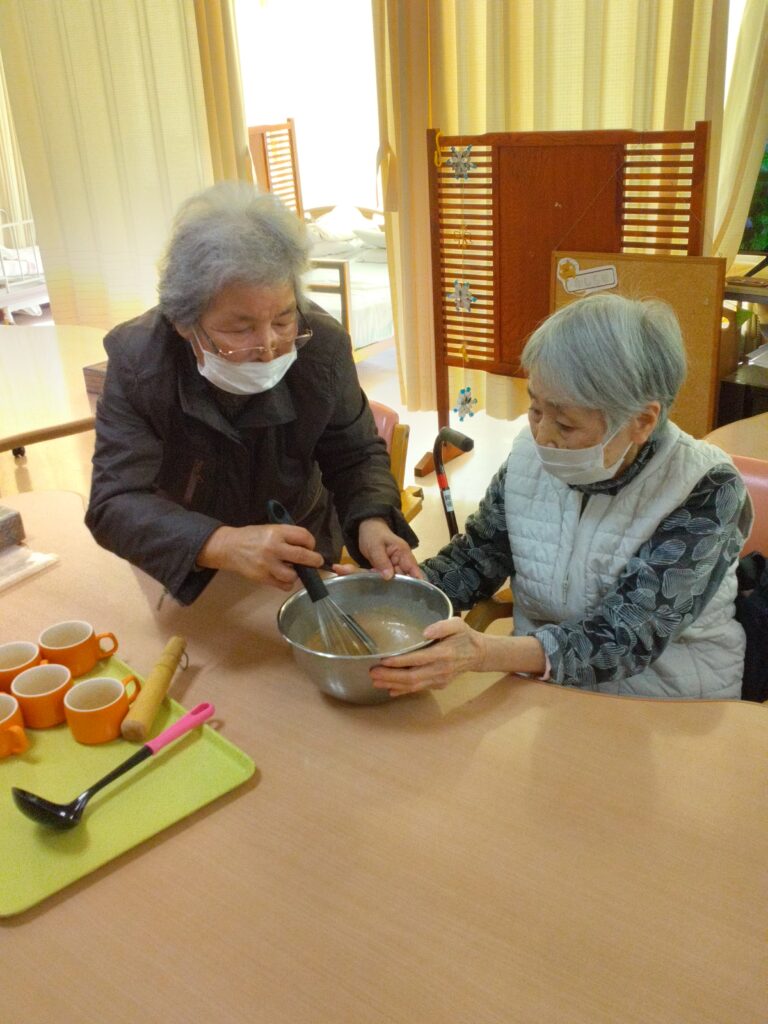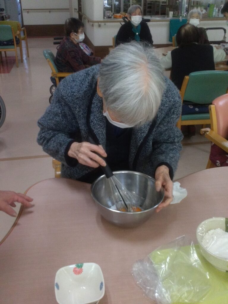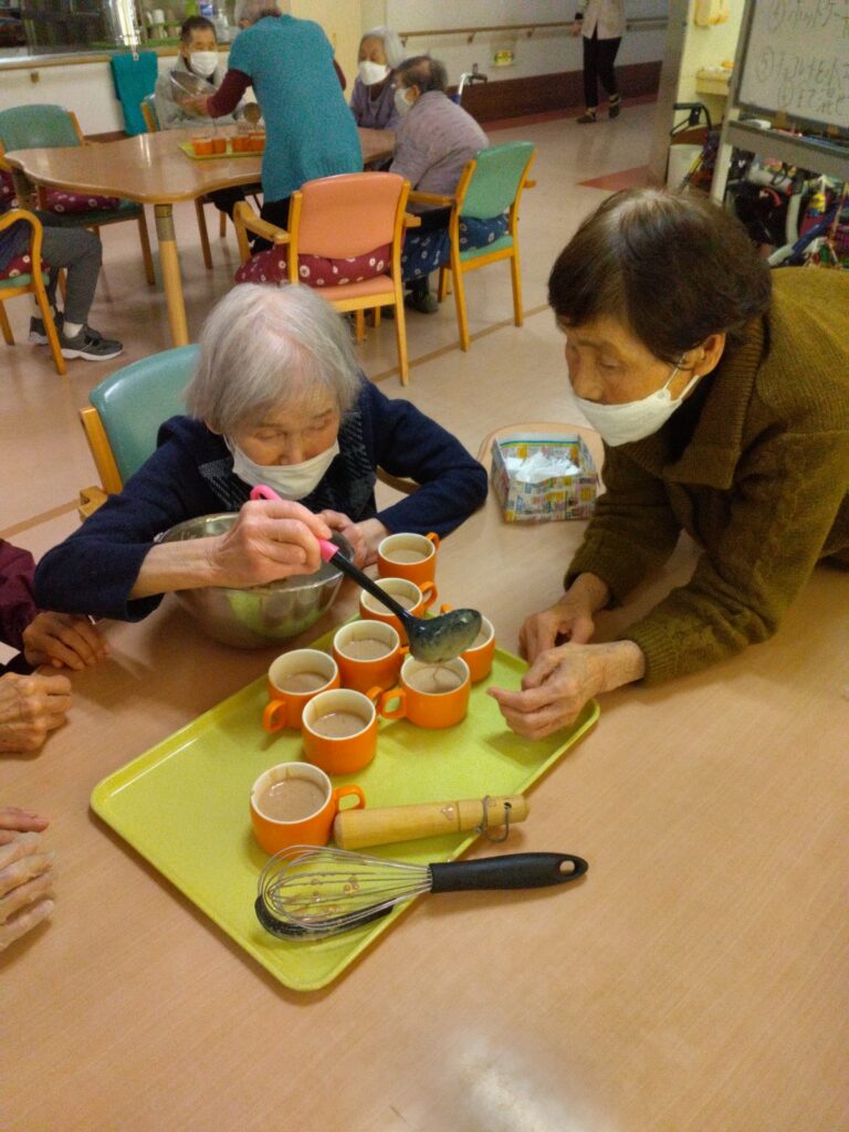 材料を混ぜる工程では「家でよく蒸しパン作ったわ」「甘い匂いするなぁ( ^)o(^ )」と昔を思い出され、賑やかに会話をされながら作業をされていました!