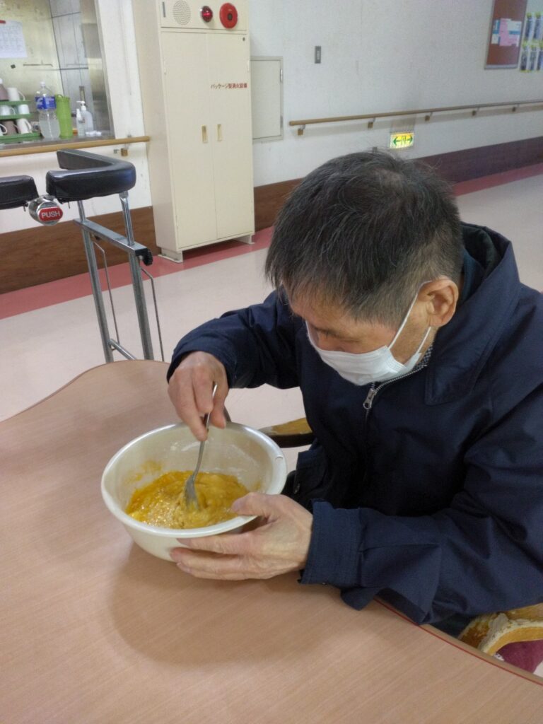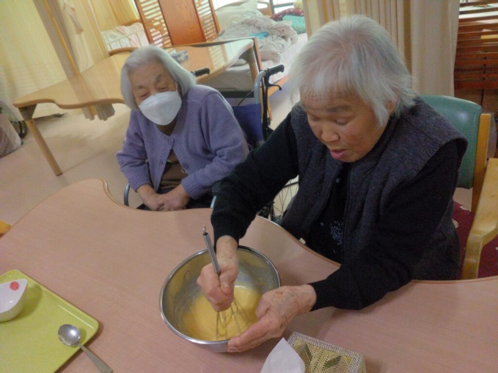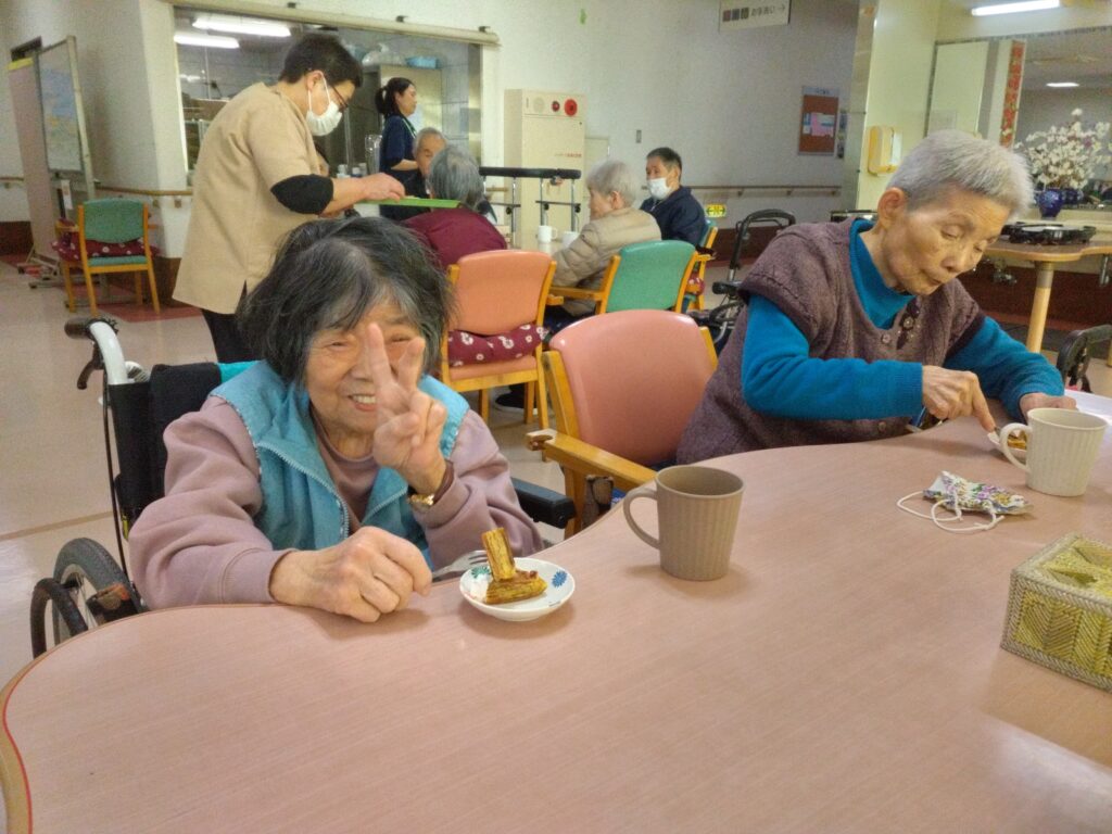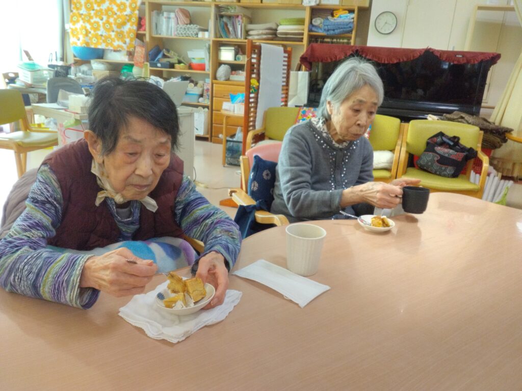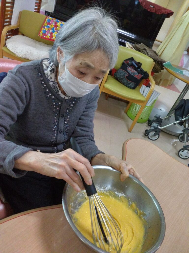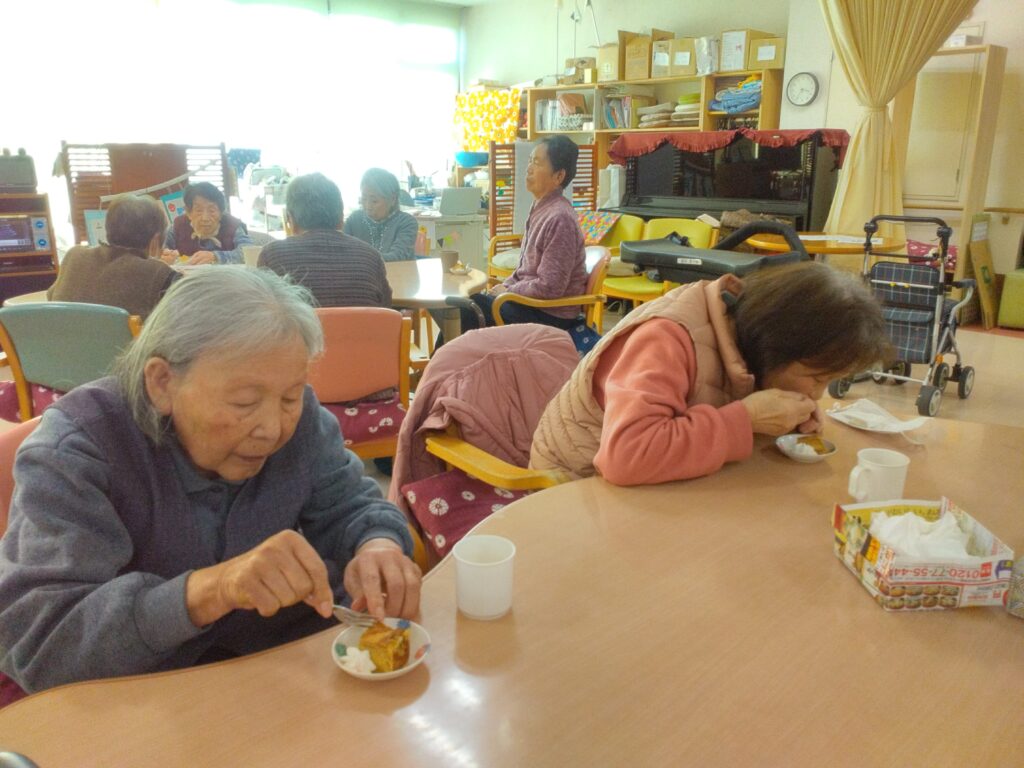 お茶の時間に出来上がったバームクーヘンをご提供すると皆さんおいしい美味しい!バームクーヘン作れるんやななど仰っておられました(^^)/