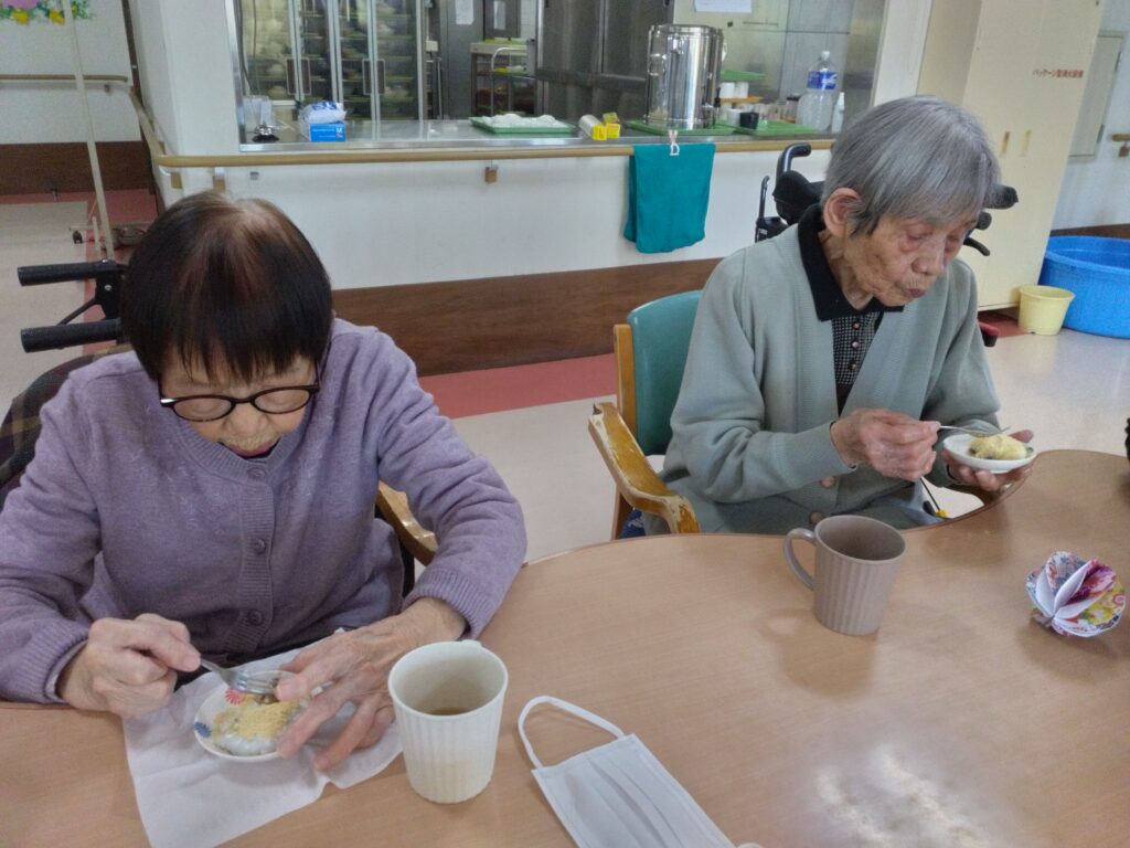 ぼたもち作りは皆さん手慣れておられるため、あっという間に出来上がりました(^^)/なかなか家でしなくなったわ、昔はたくさん作ったねなど笑顔でお話されていました。