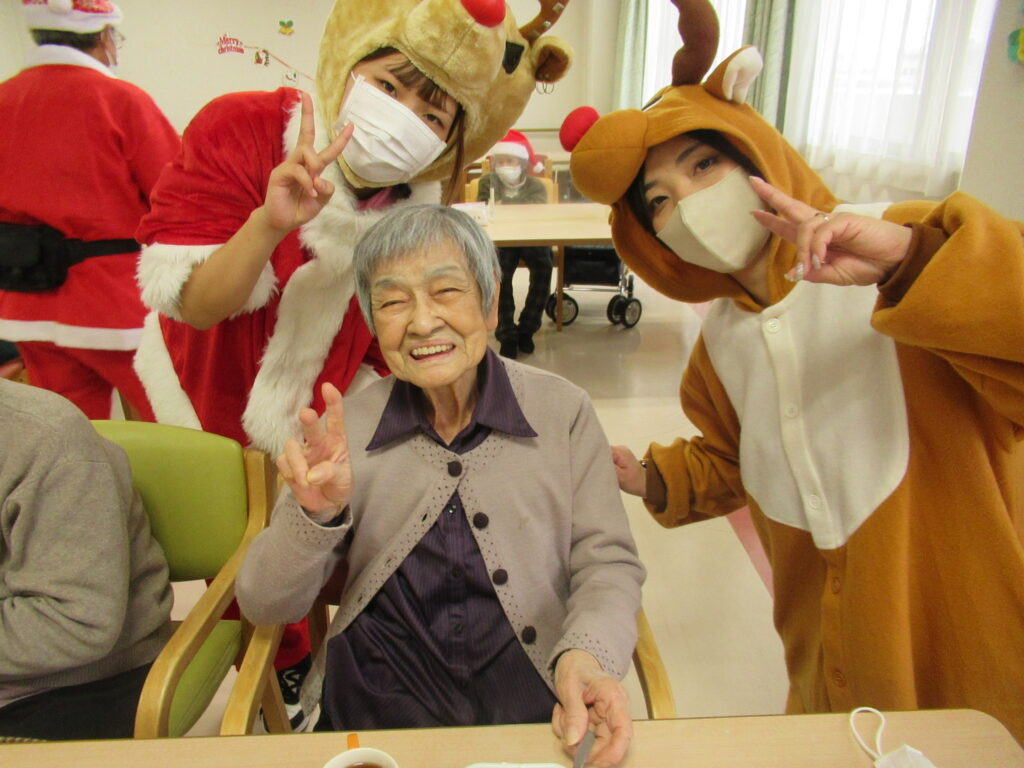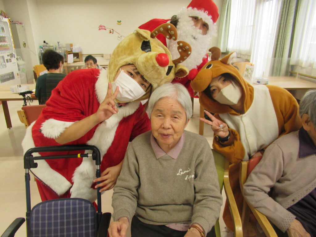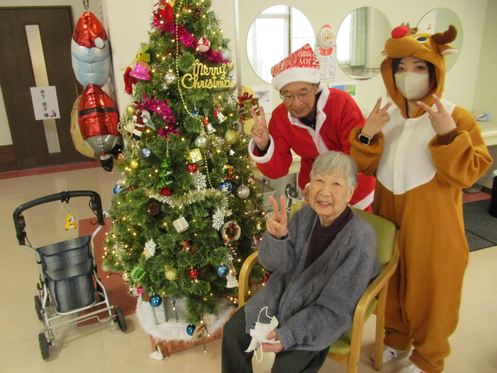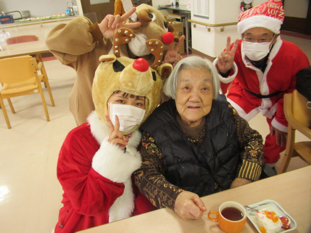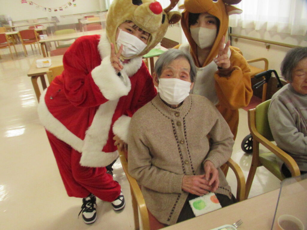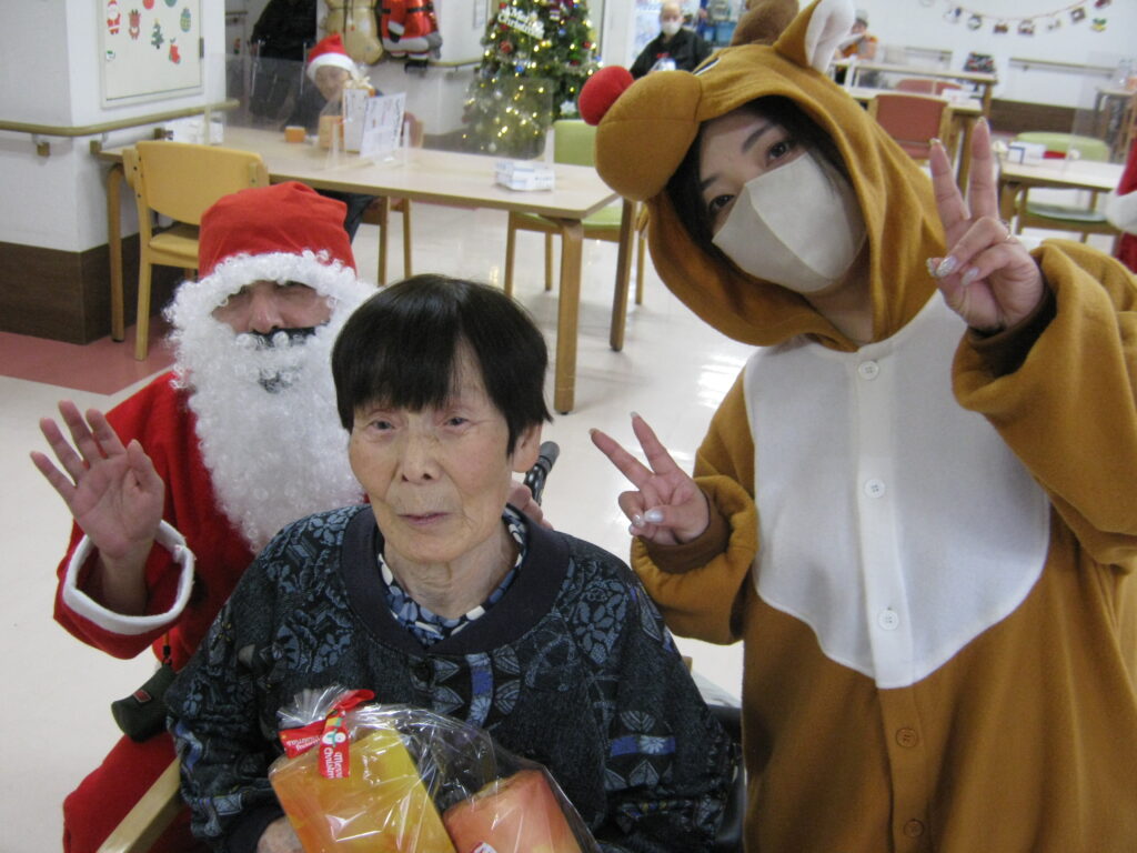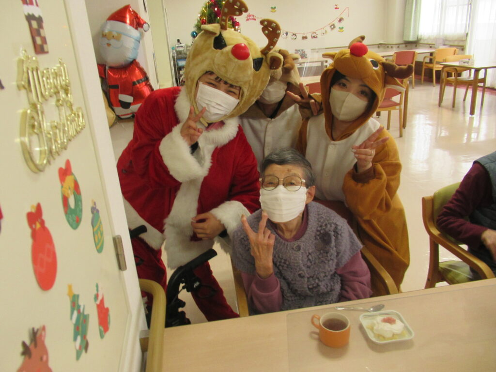 職員もサンタクロースやトナカイに扮装して皆様をお出迎え。