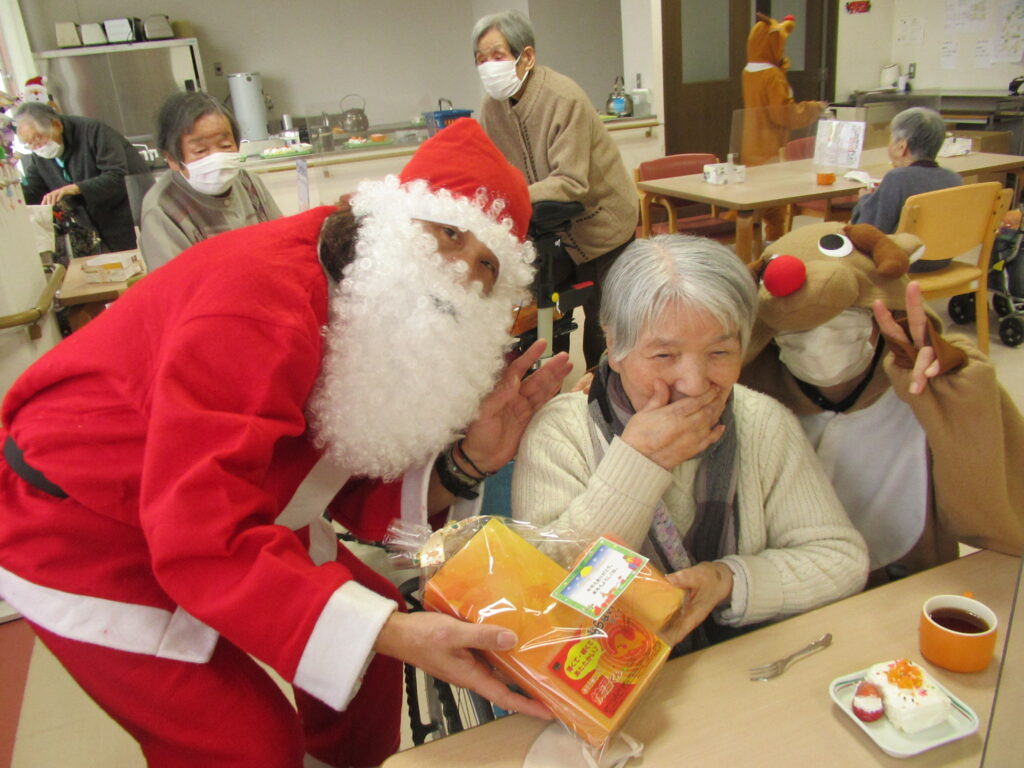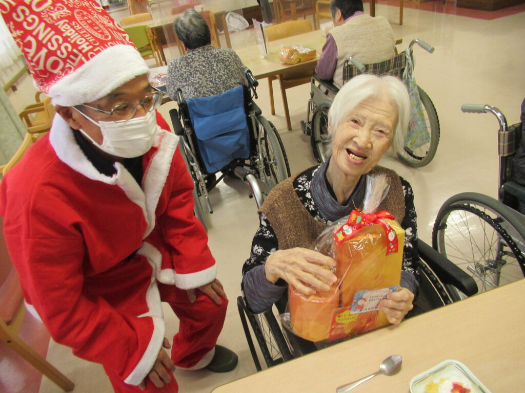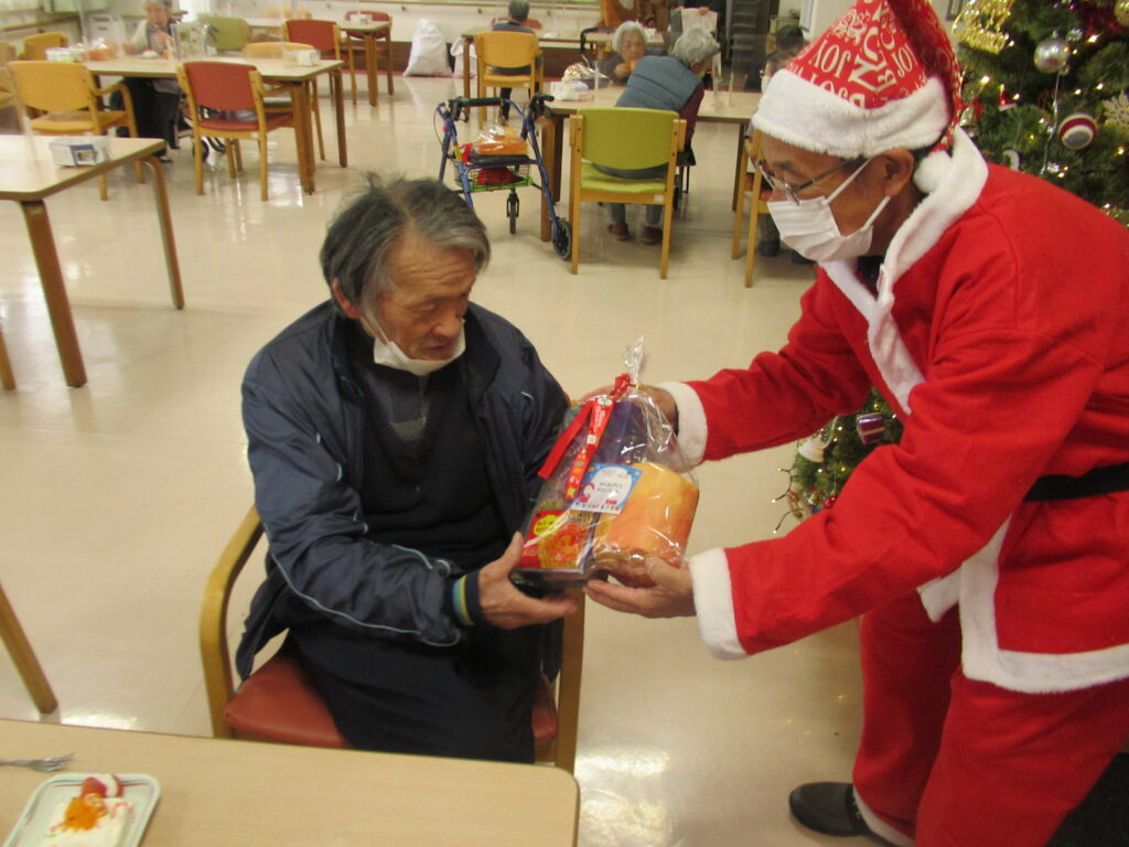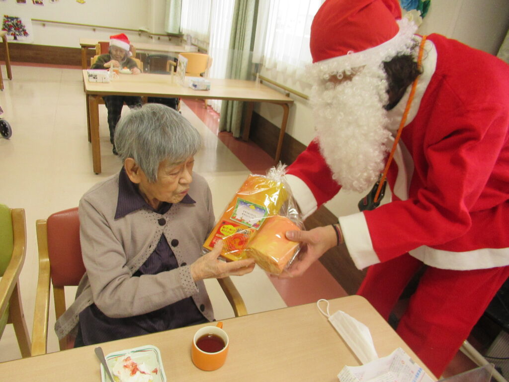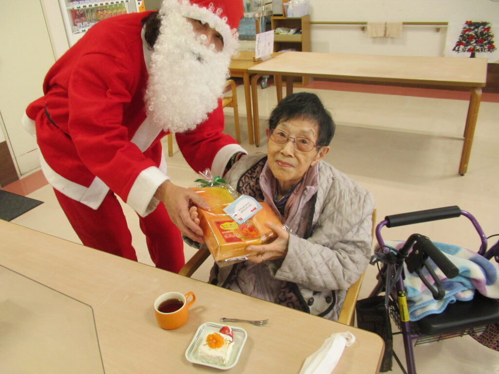 ささやかですが職員よりプレゼントと、厨房職員による手作りのクリスマスケーキで