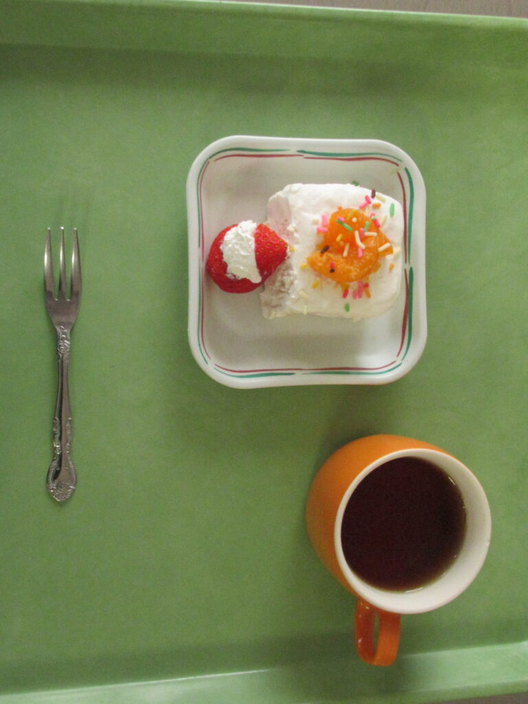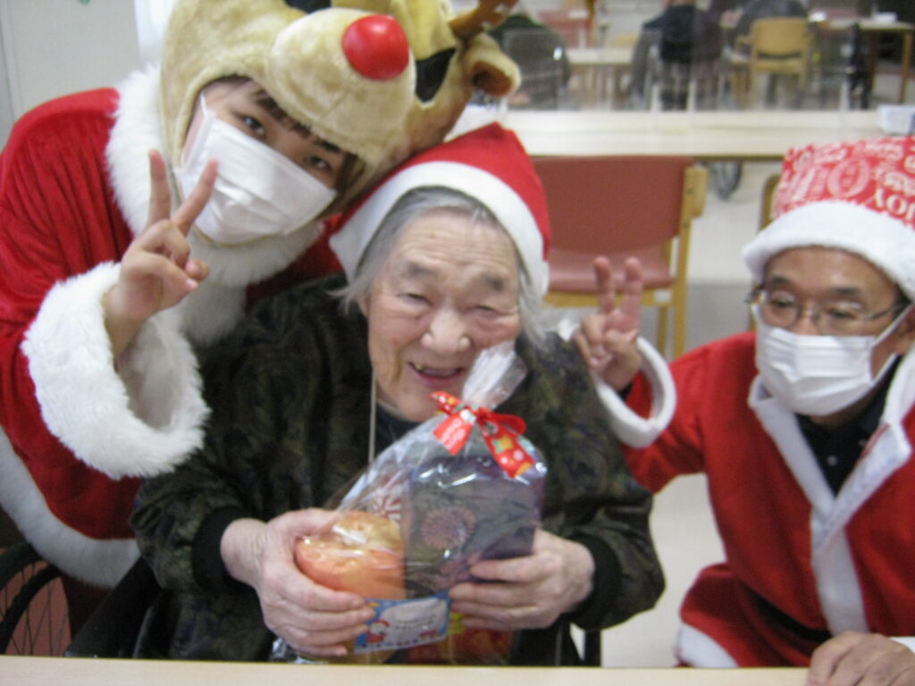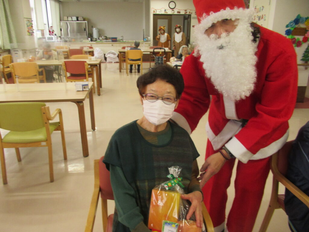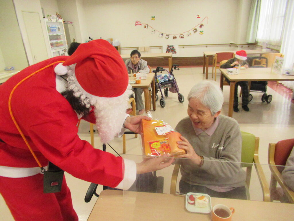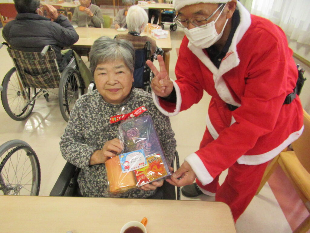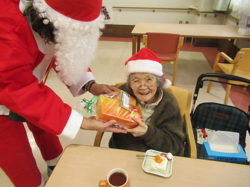 ささやかですが職員よりプレゼントと、厨房職員による手作りのクリスマスケーキで