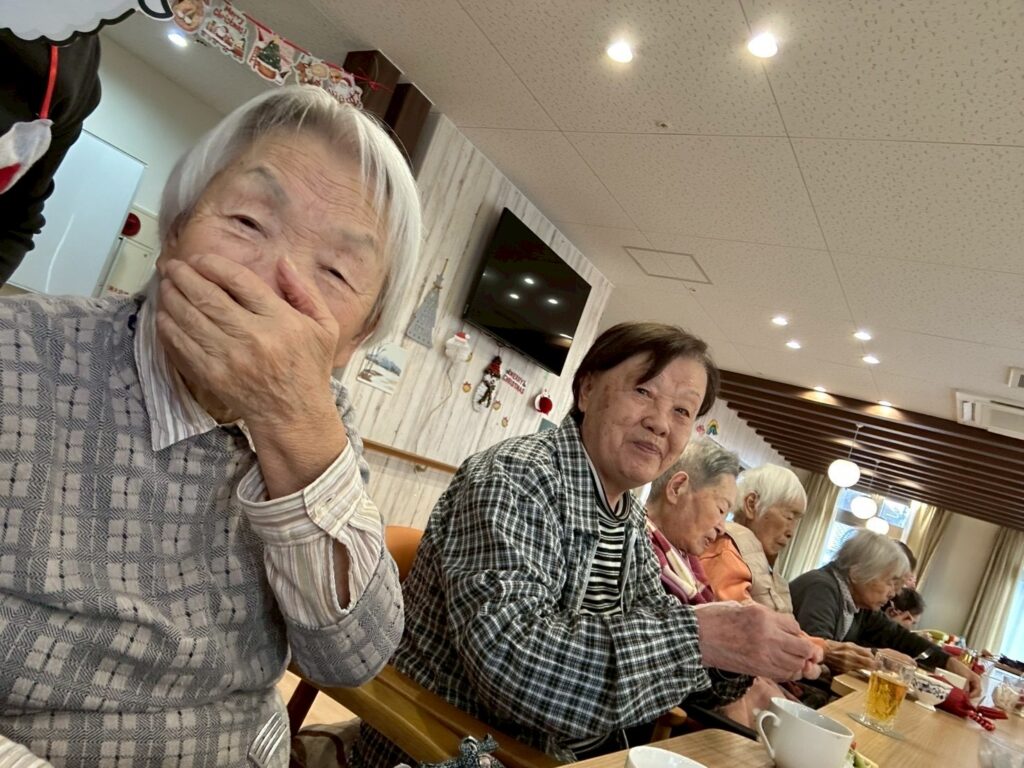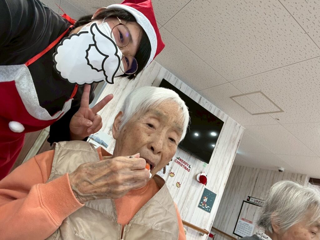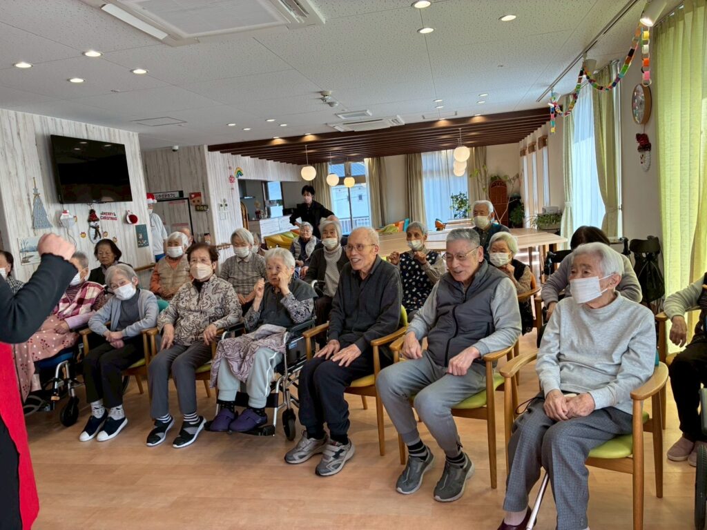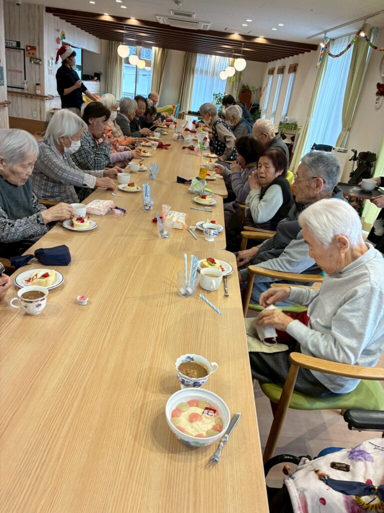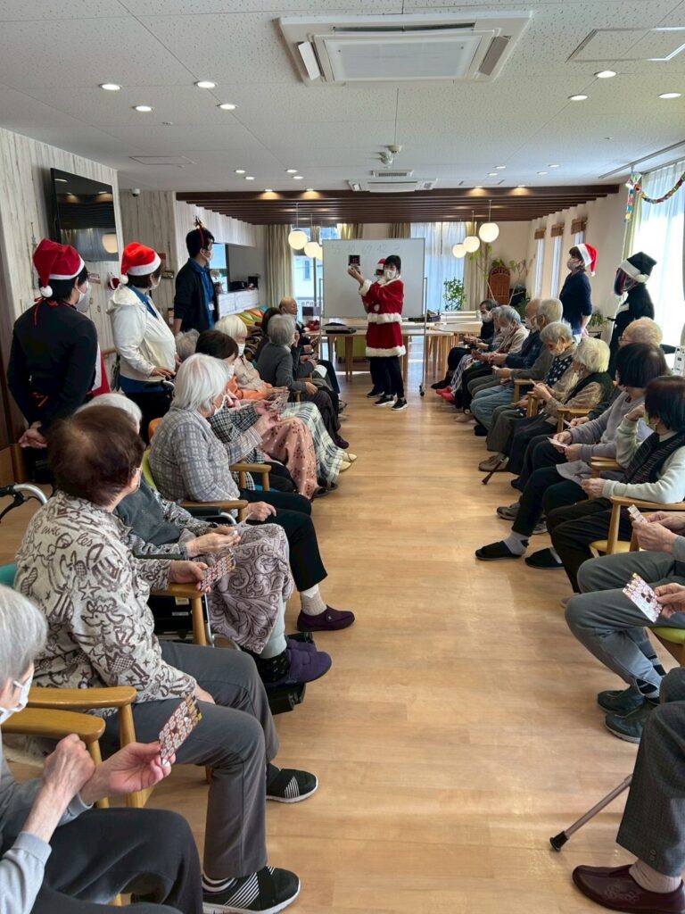 12月19日(金) 弥栄の園の食堂にてご入居者様とクリスマス会を開きました!