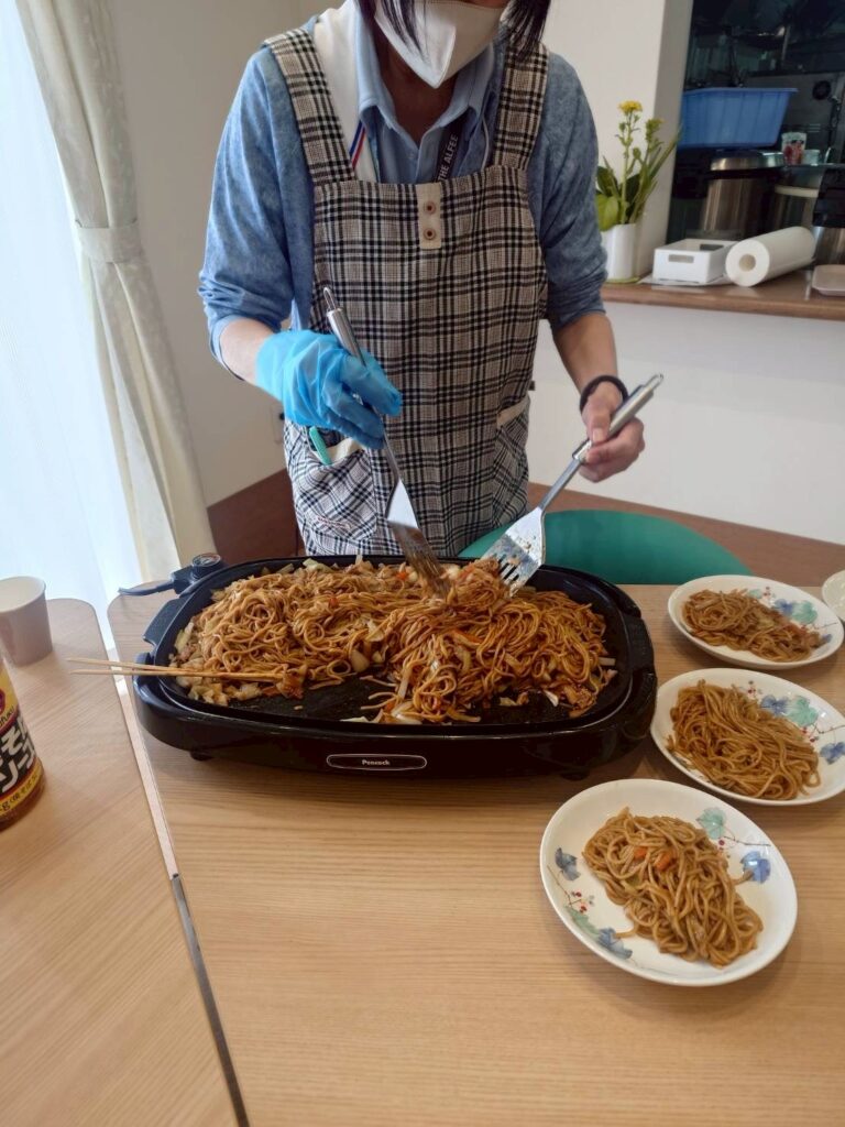 また、今月は職員が手作りしました「焼きそば」と「どら焼き」を振る舞いました!